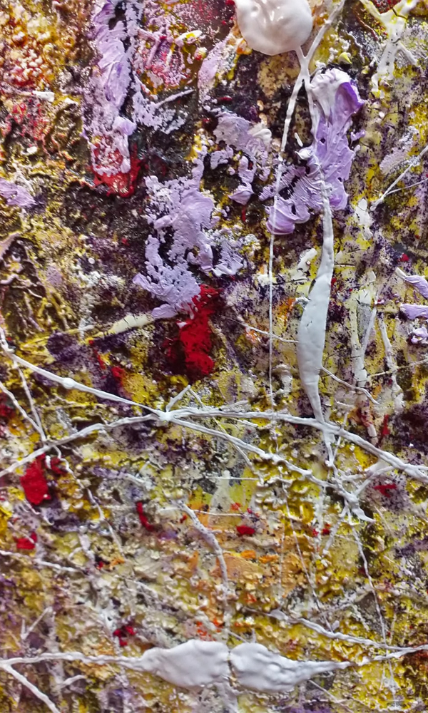 La artista juega con diferentes texturas sobre el lienzo para obtener conseguidos volúmenes que destacan originales formas: redondas, alargadas, líneas que forman pequeños torbellinos…